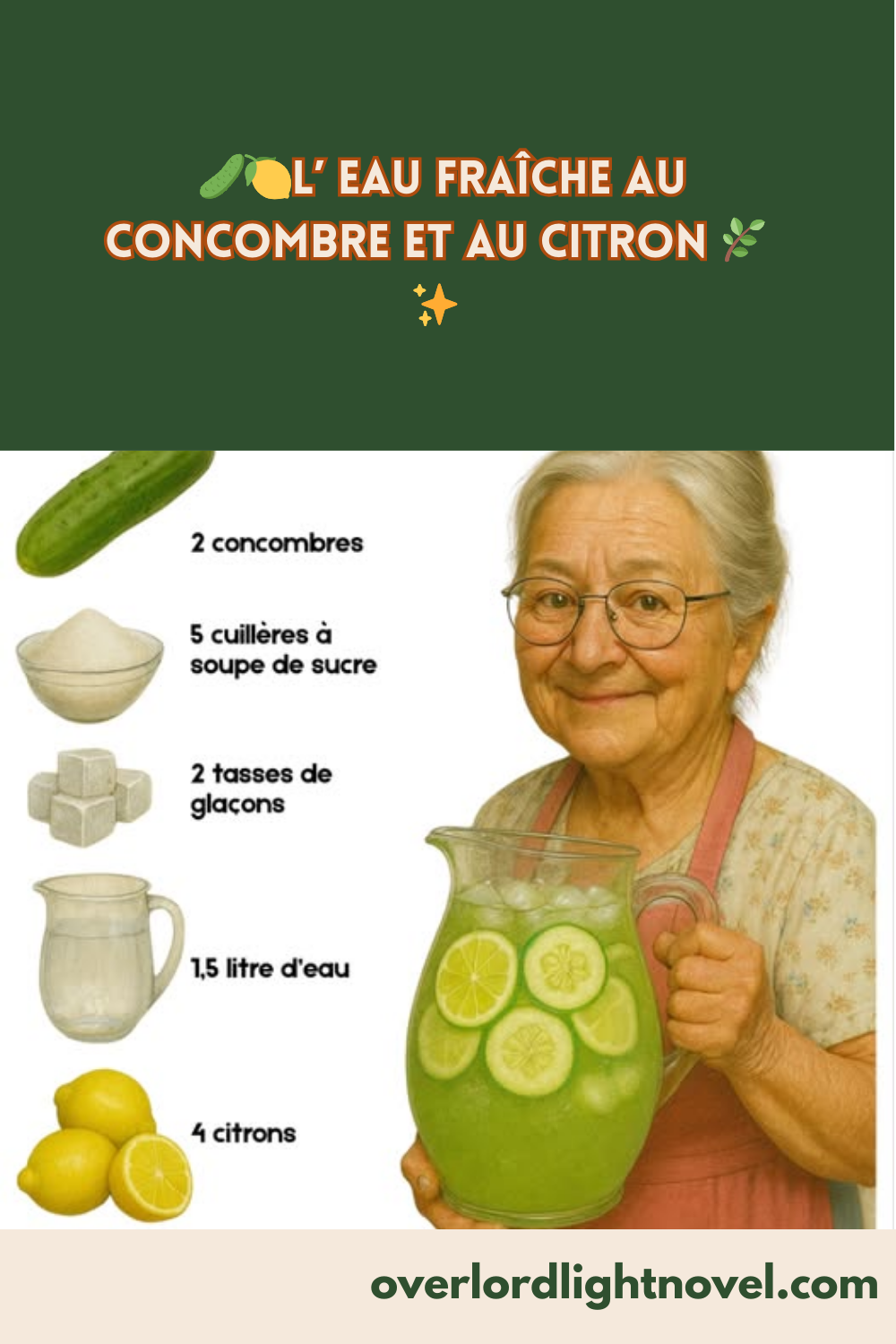 Pour réussir une 🥒🍋 Eau fraîche au concombre et au citron 🌿✨, il suffit de quelques ingrédients simples :